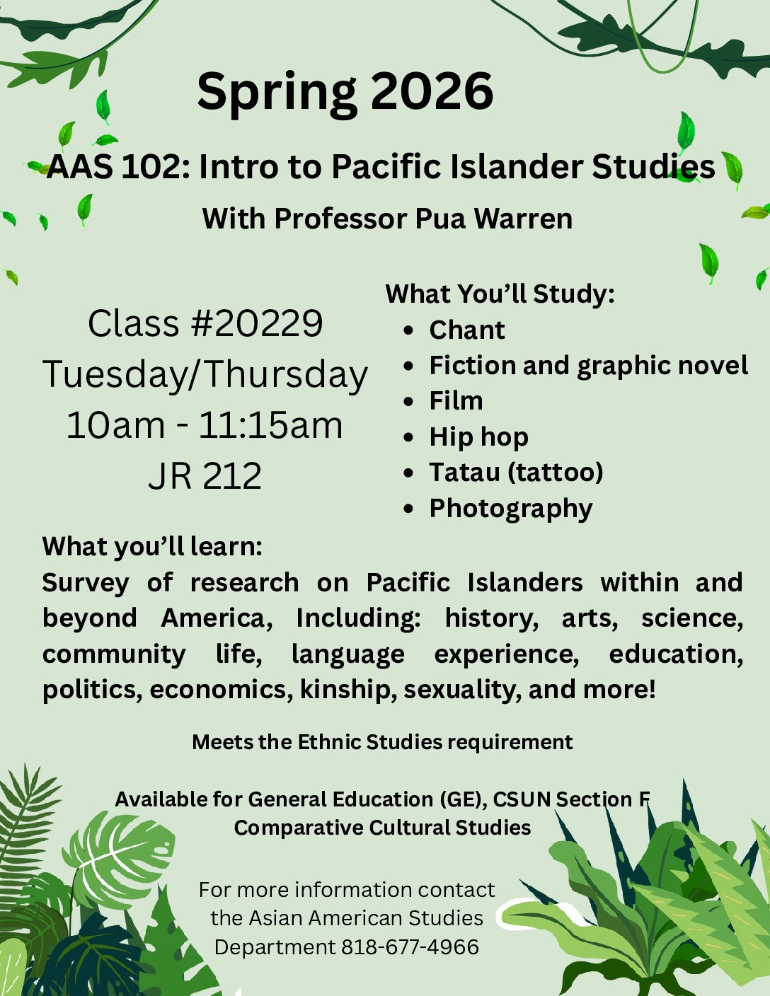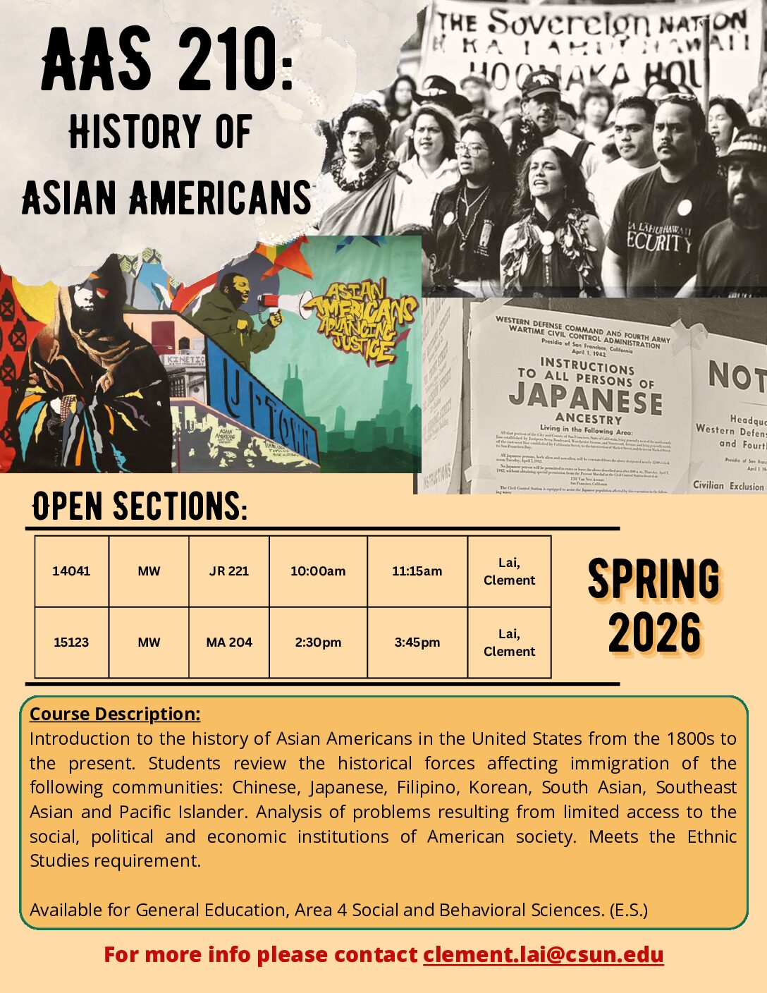 December 17, 2025 Course Offering Spring 2026: AAS 390 F. Asian American Communities: Field Practicum
