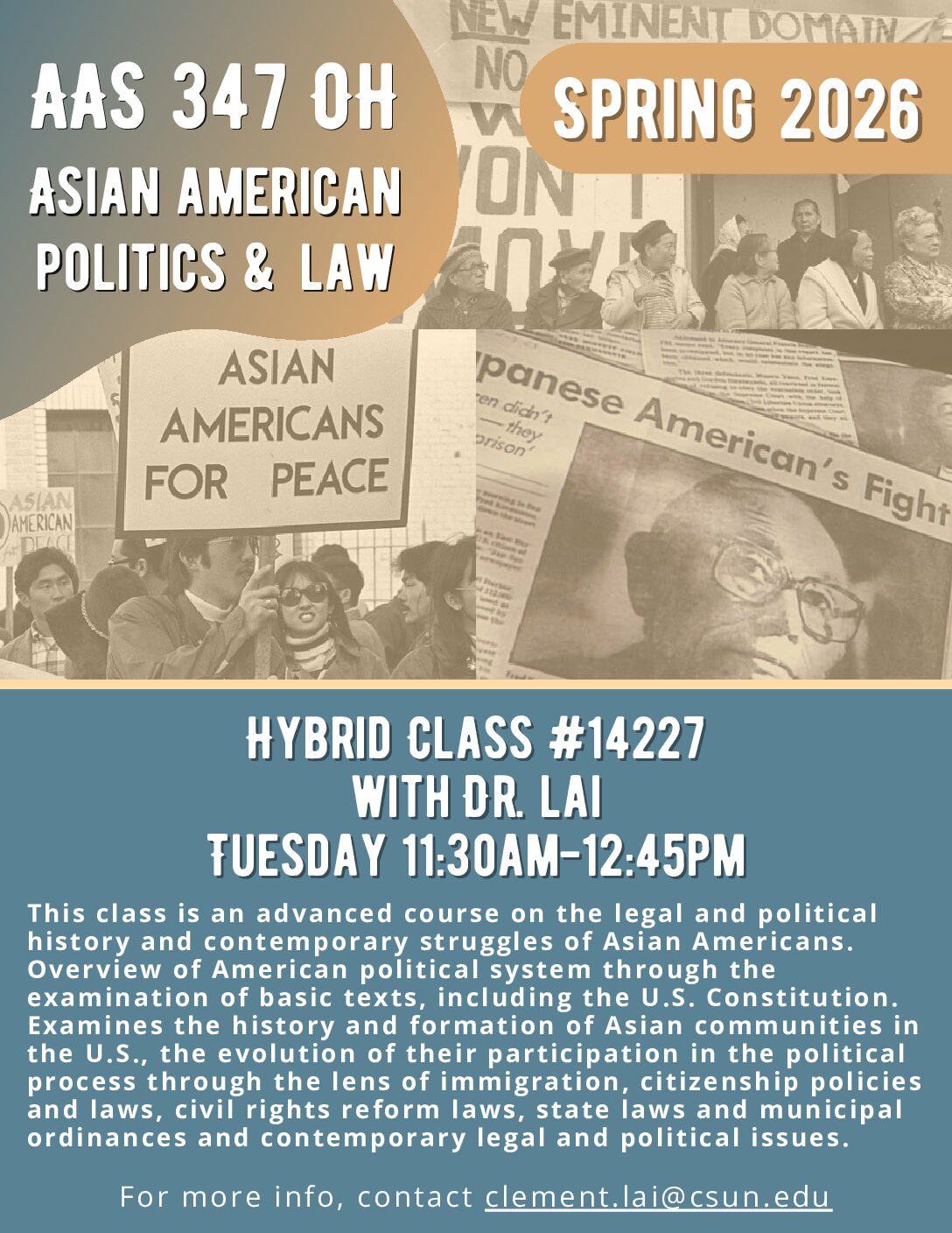 December 17, 2025 Course Offering Spring 2026: AAS 390 F. Asian American Communities: Field Practicum