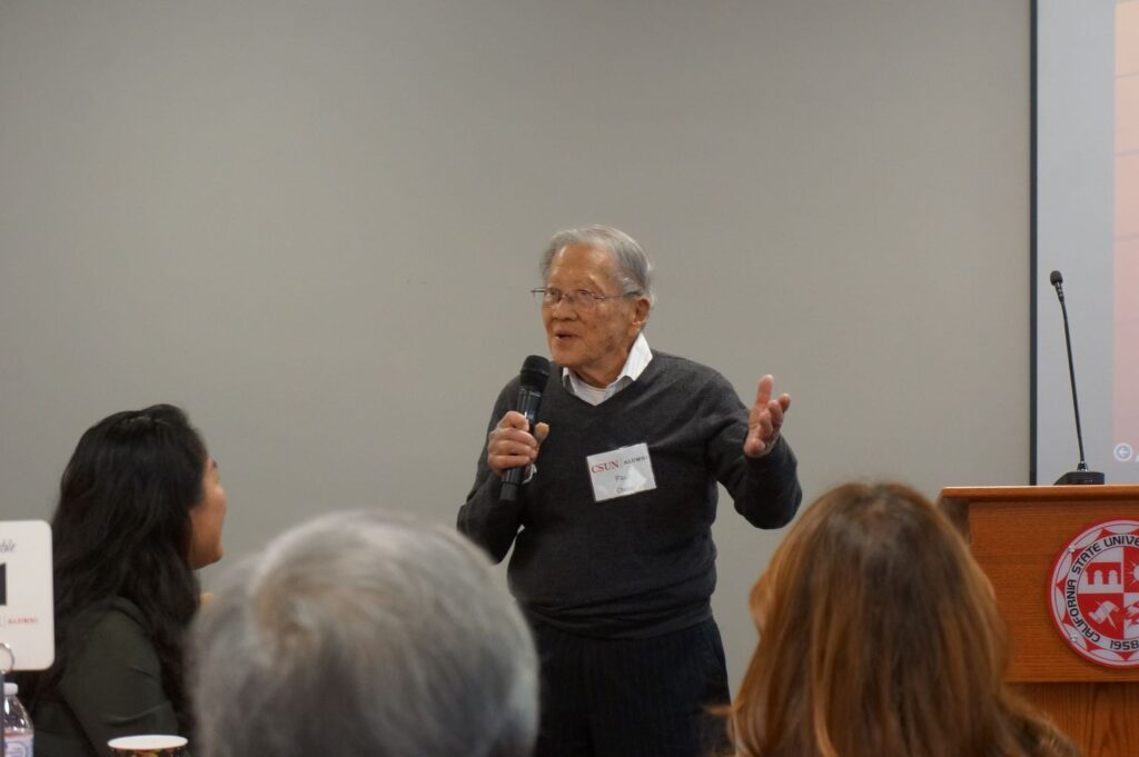 Dr. Paul Chow, a founding member of the China Institute and retired CSUN Dr., attended the event at age 98, sparking fond memories among alumni. Southern California filmmaker Xiaocheng Mu recalled choosing CSUN partly because Dr. Chow’s brother, Zhuanji Zhou, was his colleague at the Beijing Film Academy. Qi Hao also shared memories of Dr. Chow’s support for Chinese students.