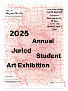 The Annual Juried Student Art Exhibition, juried by Meghan Gordon of OCHI Gallery, features a selection of work by students studying at California State University, Northridge.