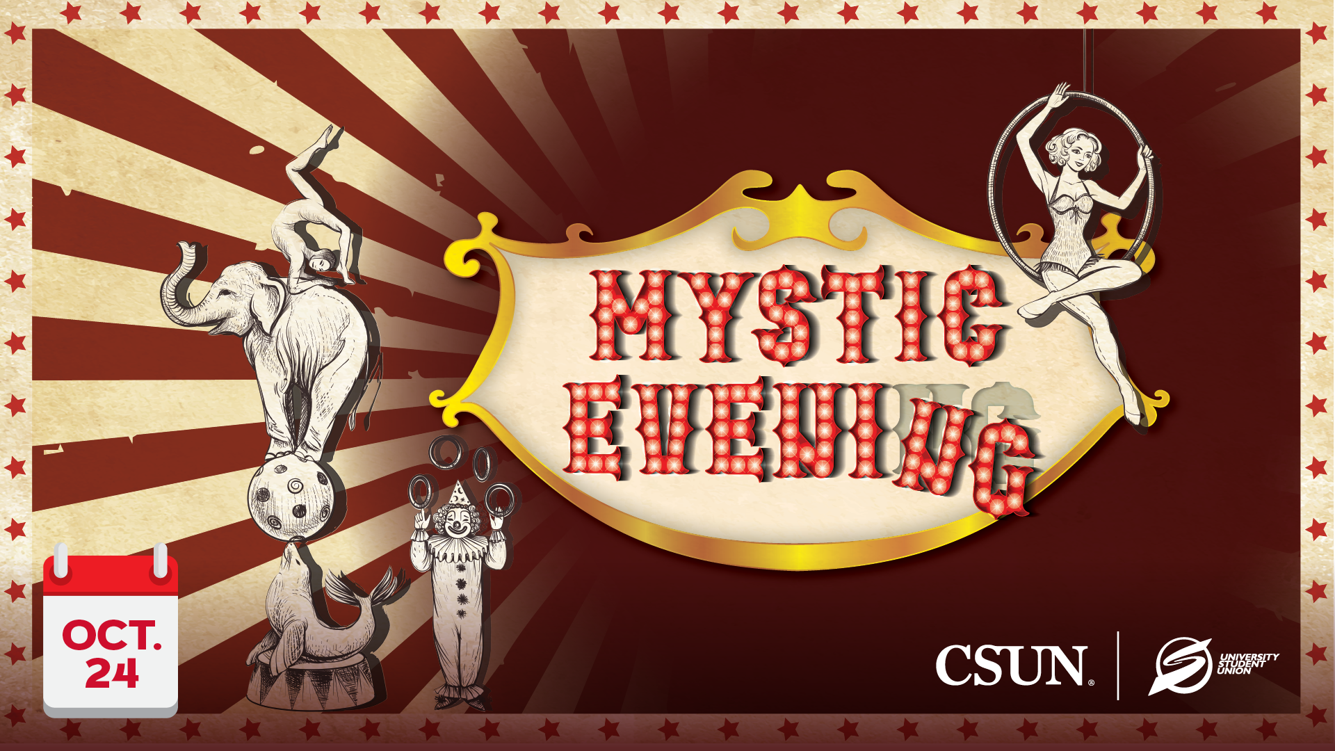 Celebrate the spooky season at Mystic Evening with a bone-chilling escapade through the USU. Enter the haunted maze if you dare, engage in macabre carnival-style amusements and discover your fortune. Throughout the night, you’ll also experience mysterious displays of magic and oddities as you indulge in nostalgic treats. Bring your friends and don’t miss the chance to be immersed in a night of thrills, magic and heart-pounding scares!