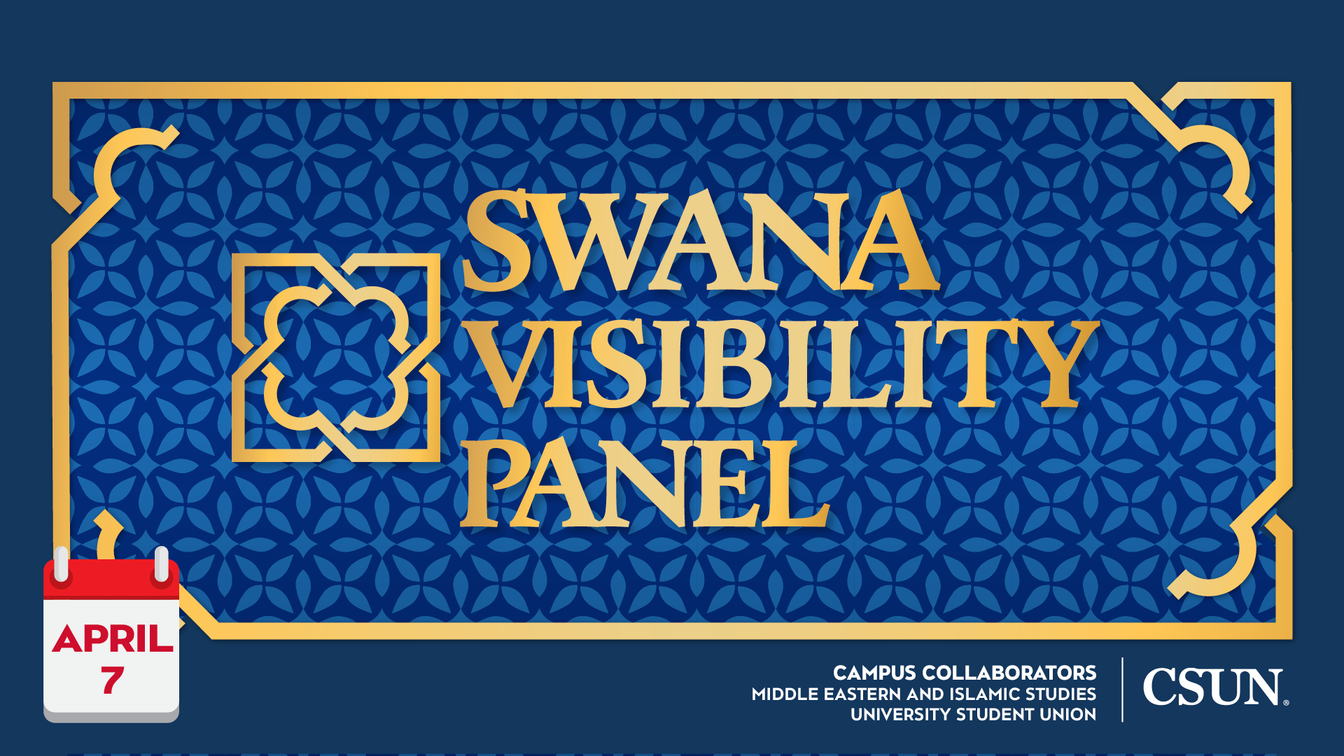 Flintridge Room, East Conference Center, University Student Union 18111 Nordhoff St., Northridge, CA, United StatesCome learn about the diverse cultures and identities that make up the Southwest Asian and North African (SWANA) region through an engaging student panel discussion, held by the Middle Eastern and Islamic Studies program! Food and refreshments will be provided at this meaningful event that honors rich history, traditions, and intersectionality. Do you… Continue reading Southwest Asian and North African (SWANA) Visibility Panel